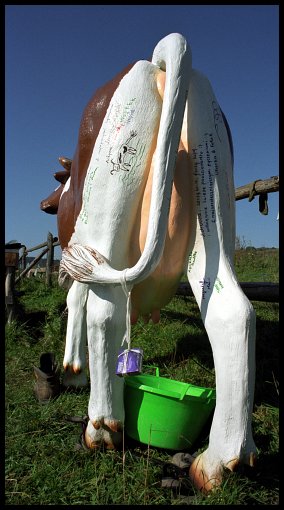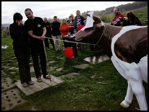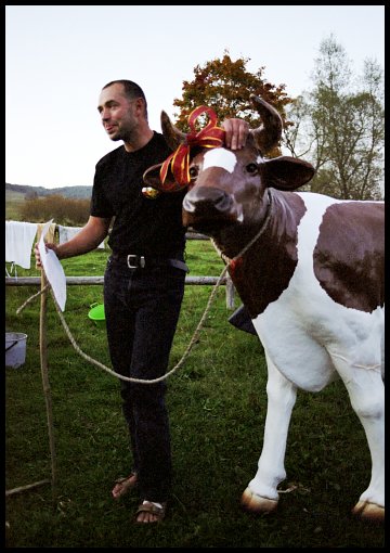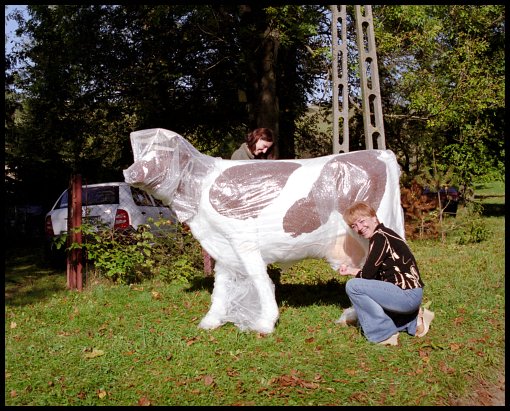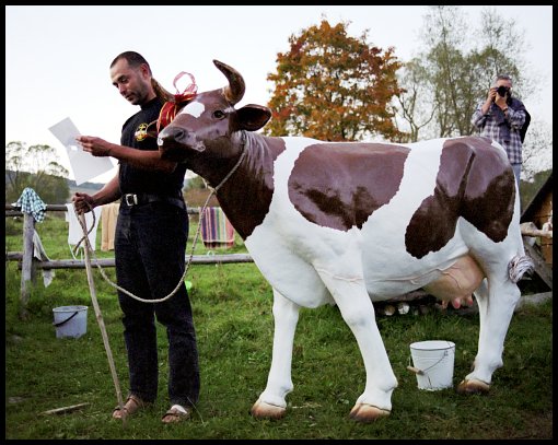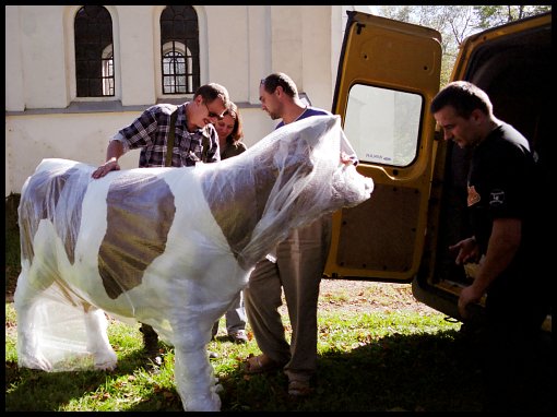 sztuczną, ale wyglądającą jak żywą, krowę. Stworzonko było naturalnych
