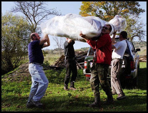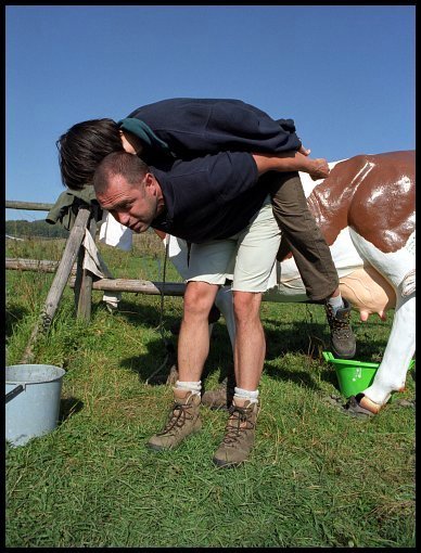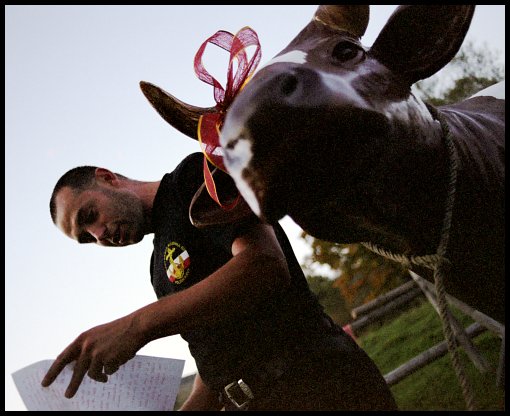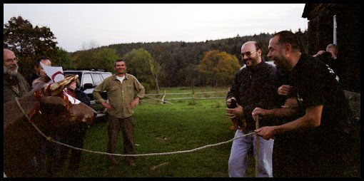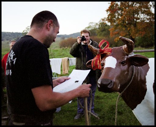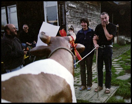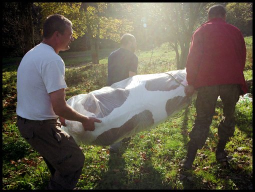obejrzeć przebieg całego wydarzenia - od chwili dostarczenia bydlątka