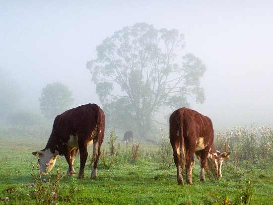 kiedy dolinę spowija mgła, z lewa i z prawa rozlegają się dźwięki do
